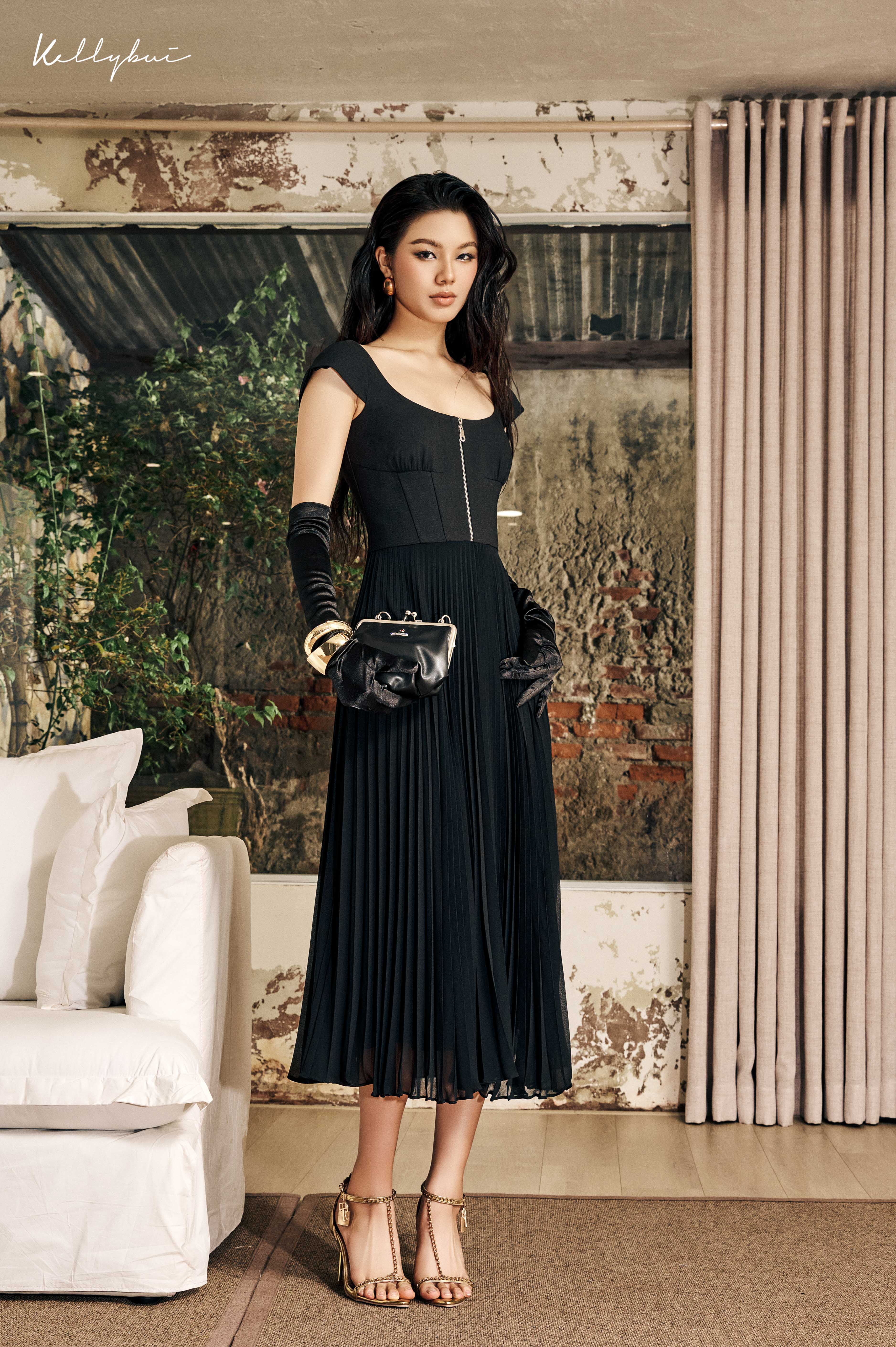 “Radiant Edge” không chỉ là thời trang, mà là một năng lượng sống – nơi người phụ nữ bước đi với ánh nhìn kiêu hãnh, bờ vai thẳng và trái tim đầy đam mê. Mỗi thiết kế trong BST là một “tuyên ngôn thị giác” về sự độc lập, tự do và cá tính. Những chiếc váy đen kinh điển được làm mới với kỹ thuật xếp ly, cut-out và sheer layering – gợi cảm đầy tự nhiên. Chất liệu denim được xử lý tinh tế, vừa giữ chất "cool" bụi bặm, vừa đủ sang trọng để xuất hiện tại bất kỳ không gian nào từ phố thị đến gallery nghệ thuật.
