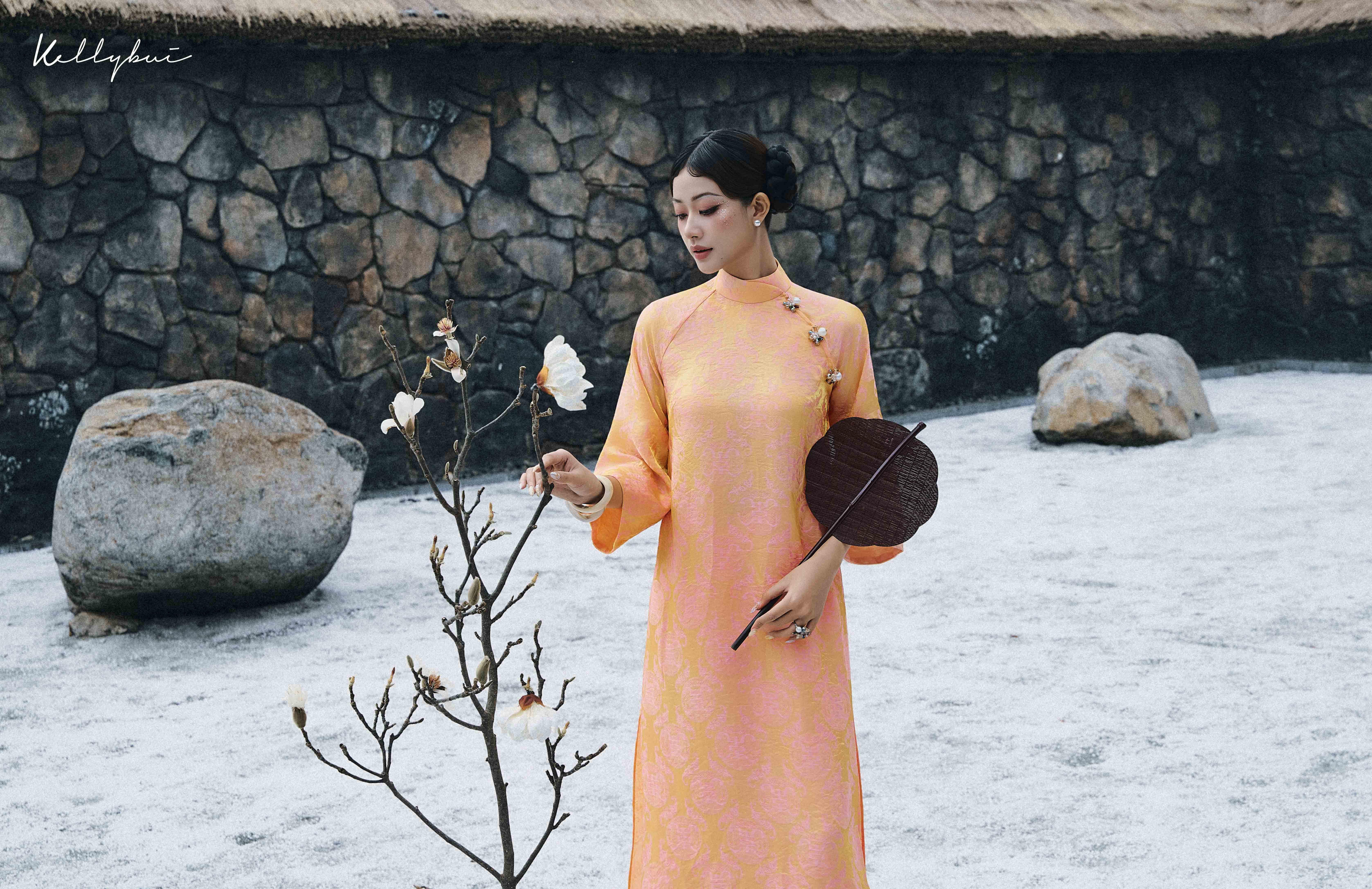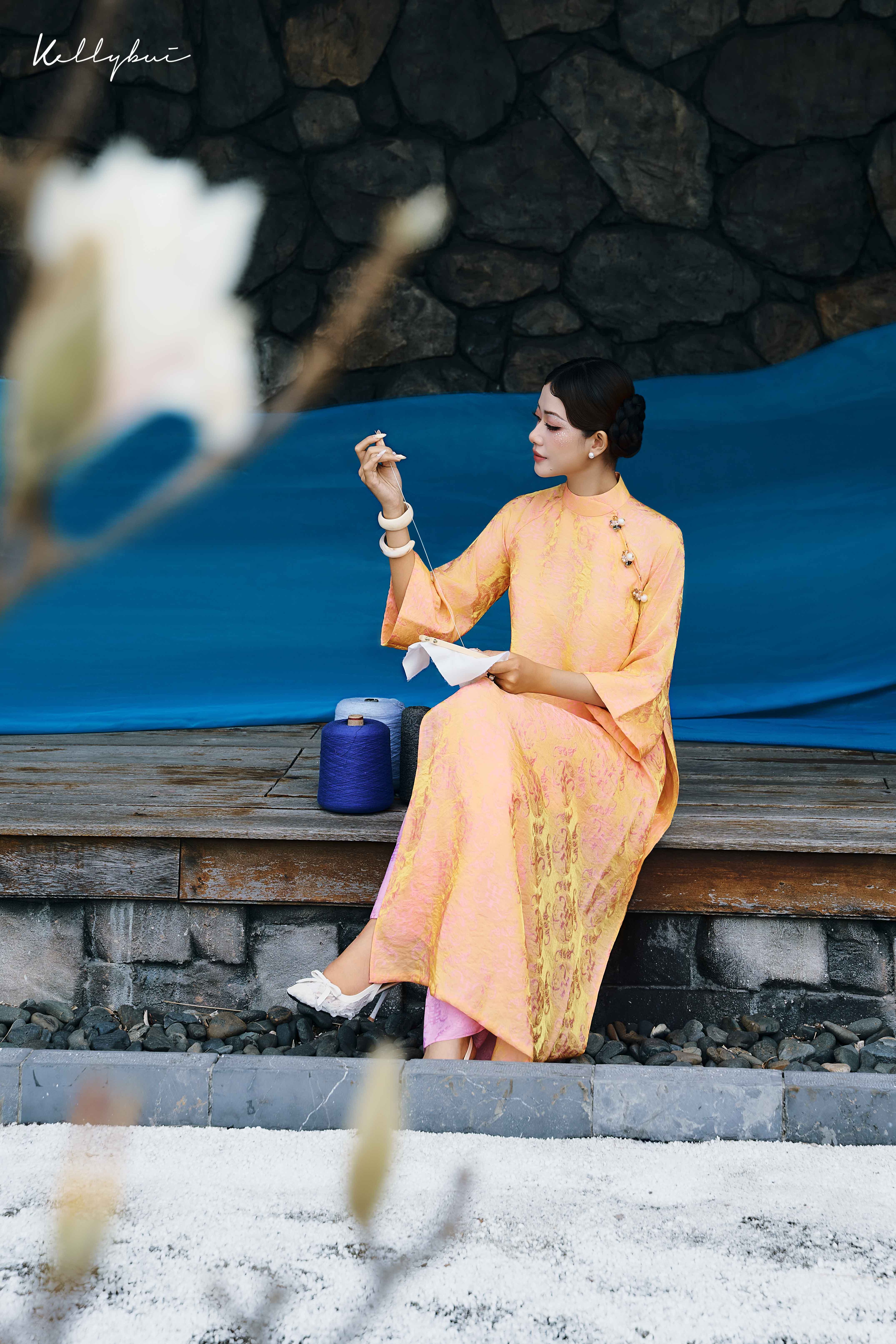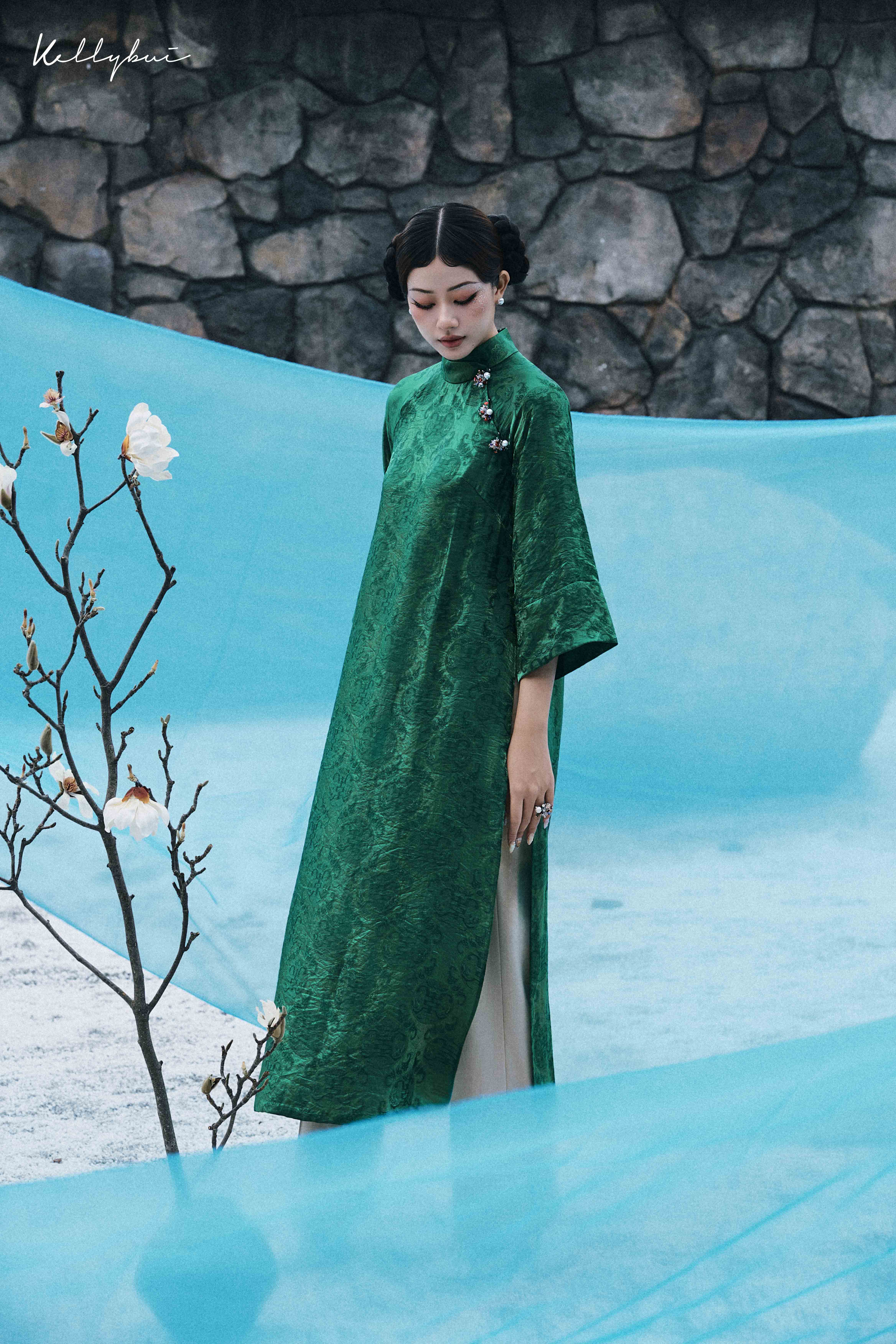 Các thiết kế trong BST áo dài Tết năm nay, được KELLYBUI lấy cảm hứng từ những chuyển động rất khẽ trong nội tâm của người phụ nữ: nhìn – cảm – lắng – nghĩ – nhớ – buông. Mỗi tà áo là một lát cắt tinh tế của hành trình ấy, được thể hiện qua phom dáng áo dài cách tân, tiết chế trong đường nét nhưng giàu chiều sâu cảm xúc. Chất liệu lụa tơ tằm cũng được ưu ái chọn lựa, nhằm ôm trọn những chuyển động cơ thể mà vẫn giữ được sự trang nhã.